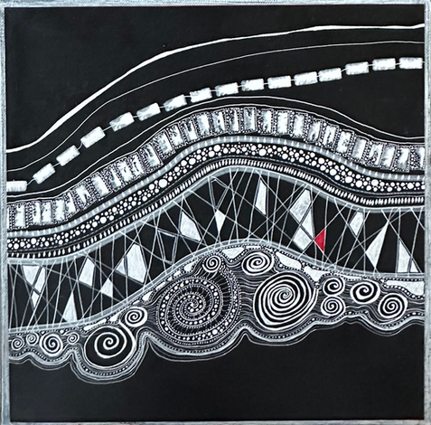 Rose Marimon, also known as Rosy Myart, is a Canberra based visual artist working exclusively in black and white. Trained in graphic design and influenced by the music and visual culture of the 1980s, she began her art practice in 2003 and shifted to monochrome in 2005. After a period of experimentation, Marimon re established her practice. Her ongoing body of work is The Rosy Myart Project.